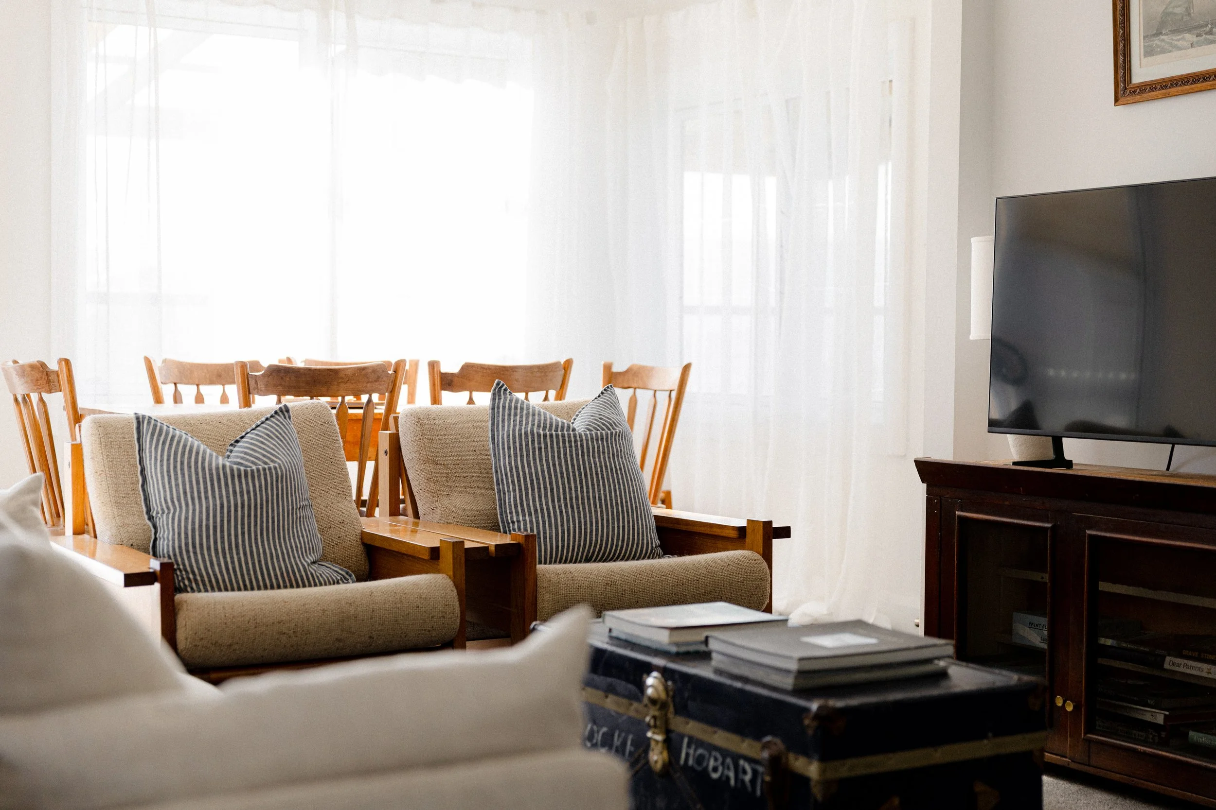 There is a JBL Bluetooth speaker in the lounge room for you to play your favourite Spotify playlists and a selection of board games in the chest and books